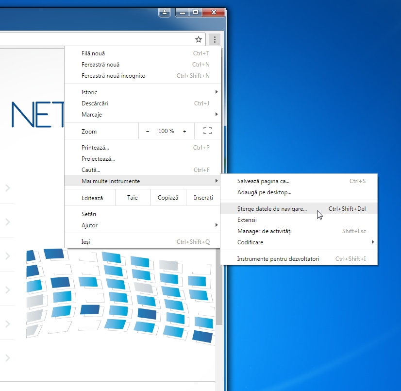 Prezentam si imagini reprezentative ale procedurii de stergere a cache-ului pentru browserul Google Chrome